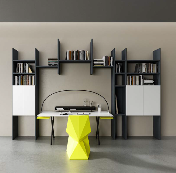 Le bureau Hook de Newform Ufficio se distingue par son design industriel affirmé, sa structure métallique apparente et ses lignes géométriques contemporaines. Pensé pour les environnements de travail flexibles et créatifs, il allie robustesse, esthétisme et modularité.